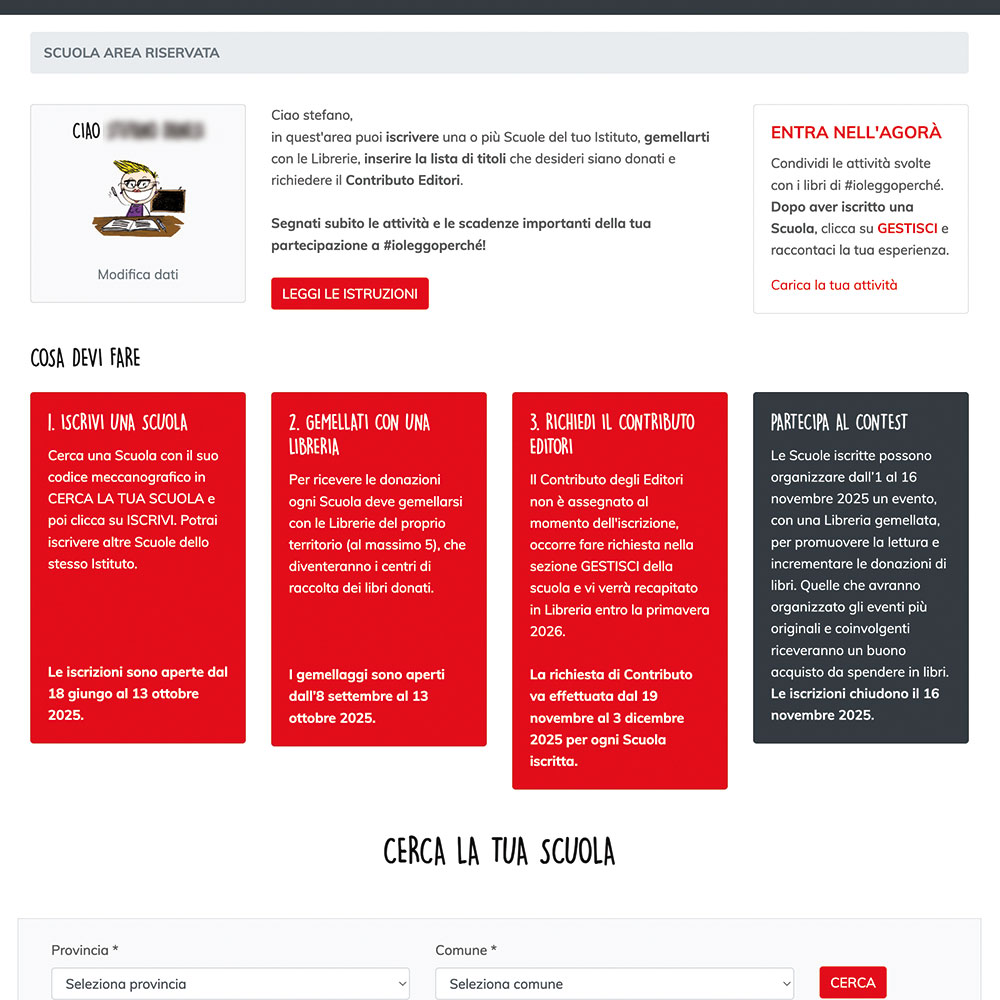 Tutte le scuole e le librerie d'Italia sono invitate a iscriversi sul relativo website e a
