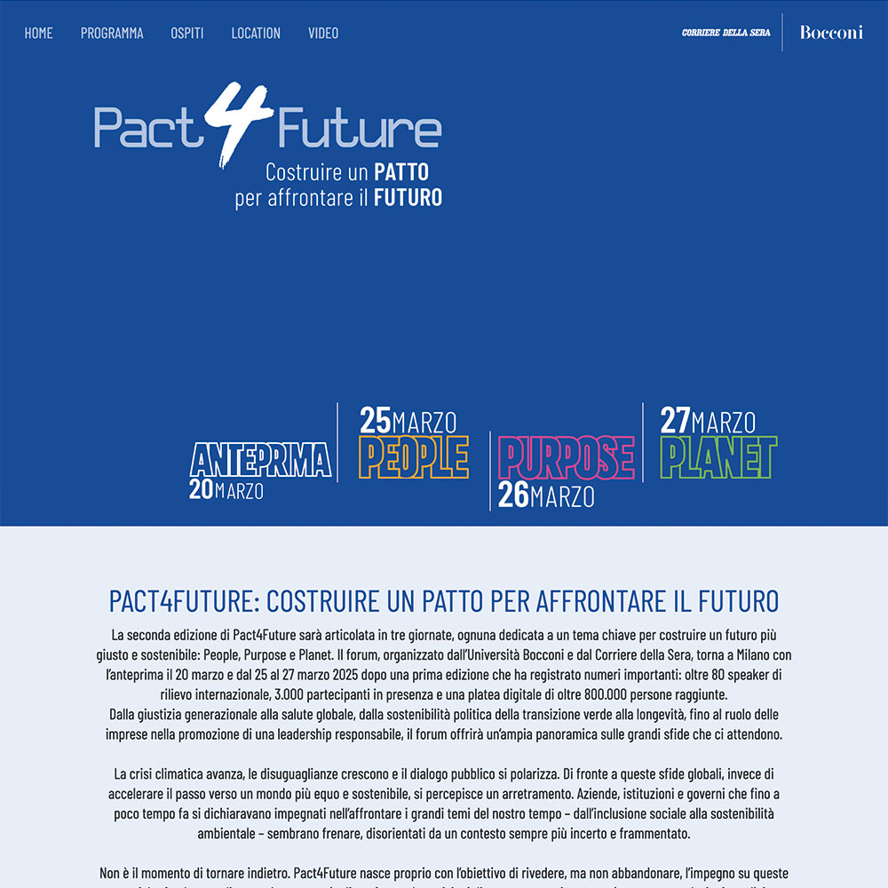 Organizzato da Corriere della Sera e Bocconi, Pact4Future è un forum internazionale