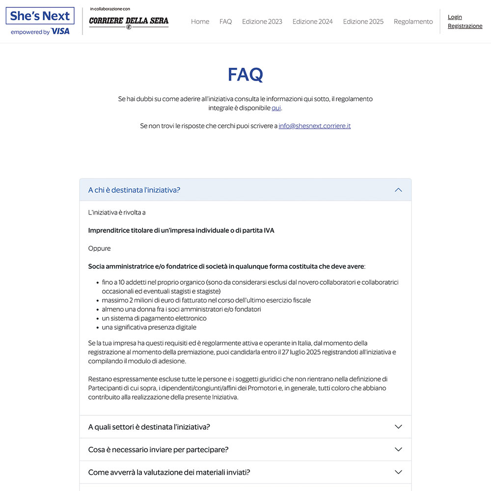 Il Corriere della Sera organizza dal 2023, in collaborazione con Visa, l'iniziativa She's Next, che
