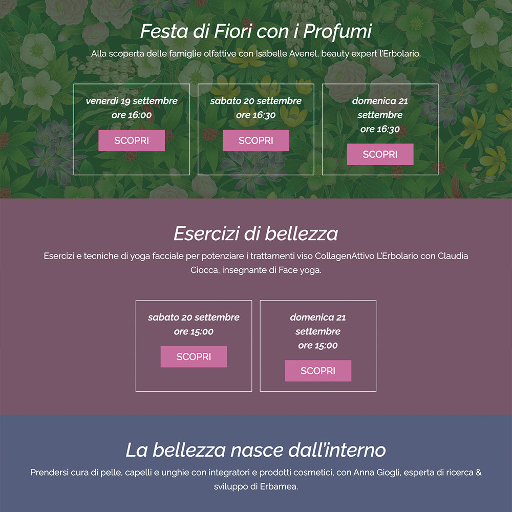 Realizzazione del sito di appoggio all'evento che si svolge, su più giorni, nei Giardini Indro