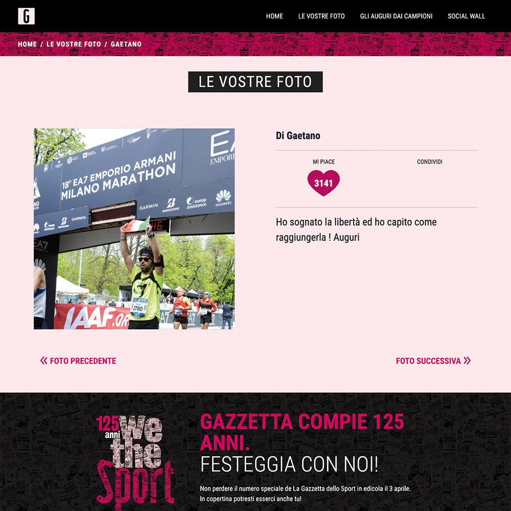 Per i 125 anni di Gazzetta, è stato sviluppato un sito dove i lettori potevano inviare il proprio