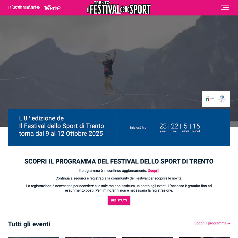 Progettazione e sviluppo del sito di appoggio all'evento che si svolge, su più giorni, a