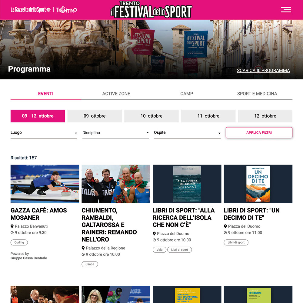 dedicato allo sport. Con già 8 edizioni alle spalle, il palinsesto conta 300 appuntamenti con più di