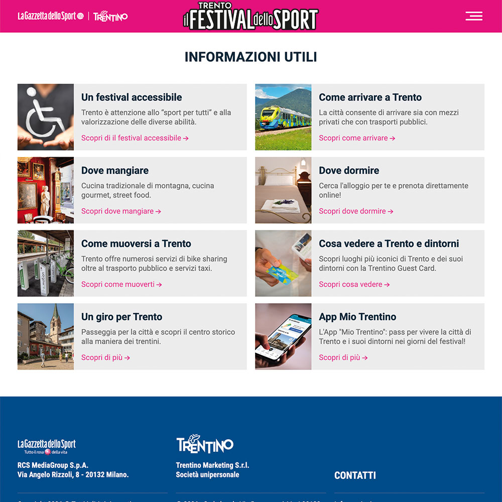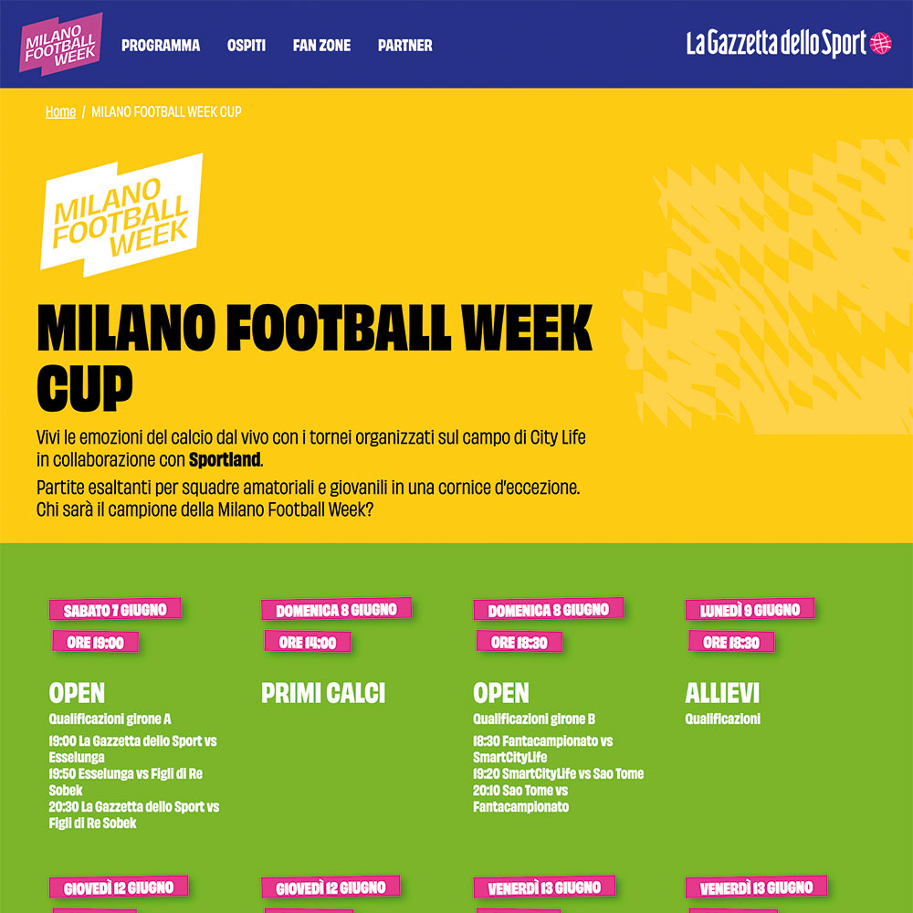 Milano. Il sito offre il programma dei talk e delle attività ludico-sportive.