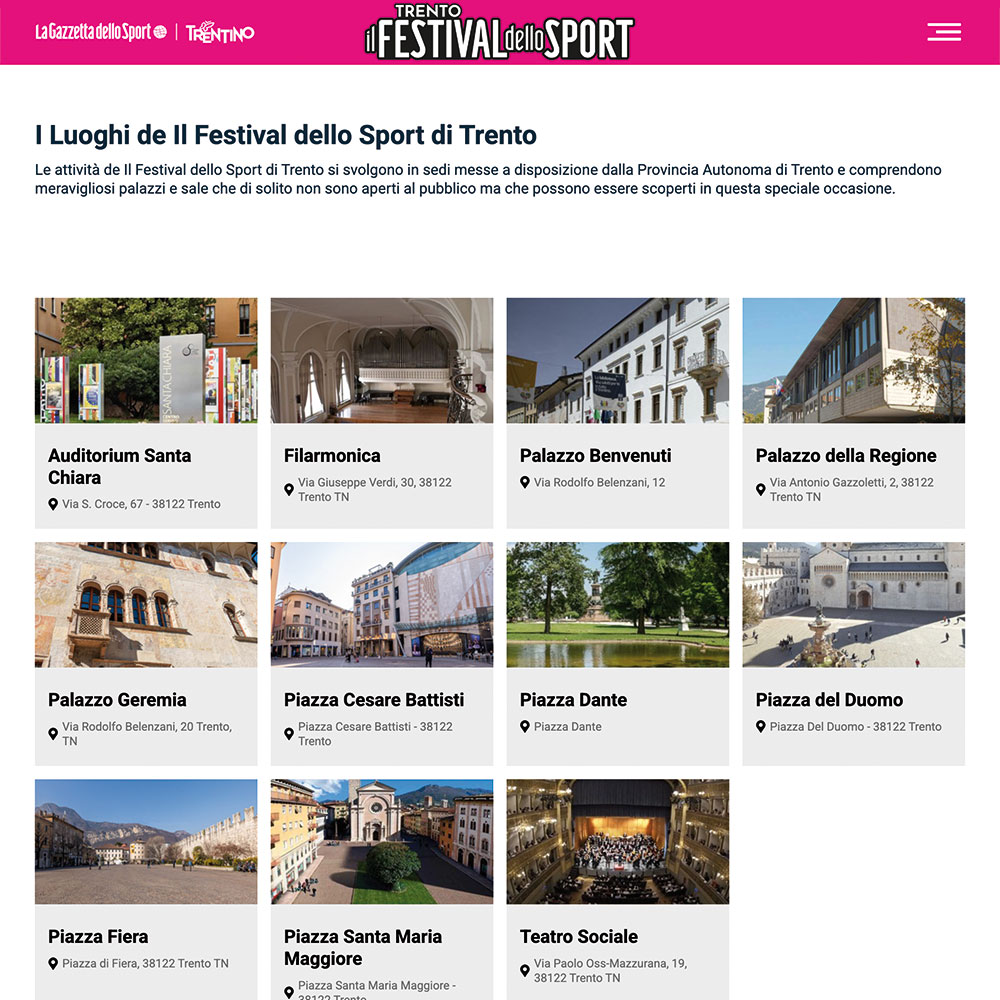 Oltre alla progettazione e sviluppo di siti a supporto delle iniziative e manifestazioni di Gazzetta, Mozart offre un supporto tecnico e redazionale che interviene con tempismo assecondando le esigenze di comunicazione della testata. Mozart ha inoltre sviluppato una dashboard che regola la regia di più streaming in contemporanea: la tecnologia utilizzata permette un cambio dei video visualizzati in pagina senza l’aggiornamento del browser da parte dell’utente.