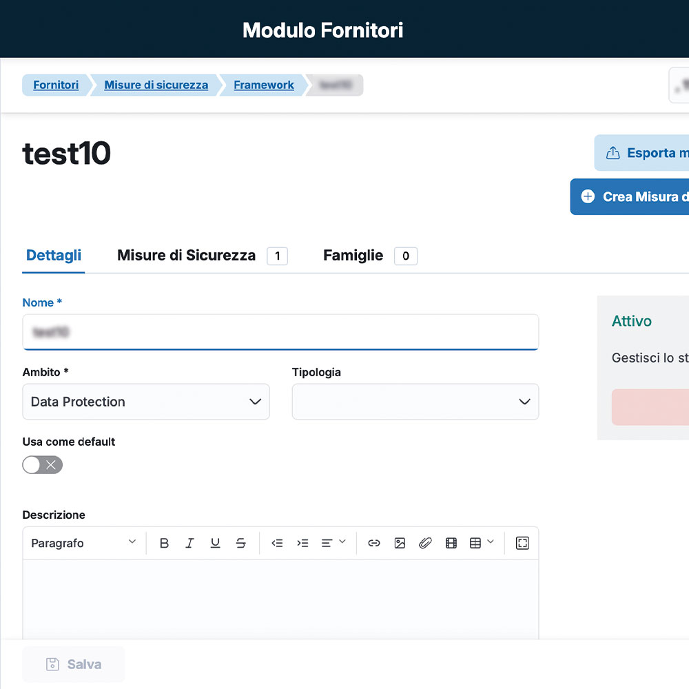normativo, applicazione degli adempimenti, gestione dei fornitori. È su uno stack di sviluppo